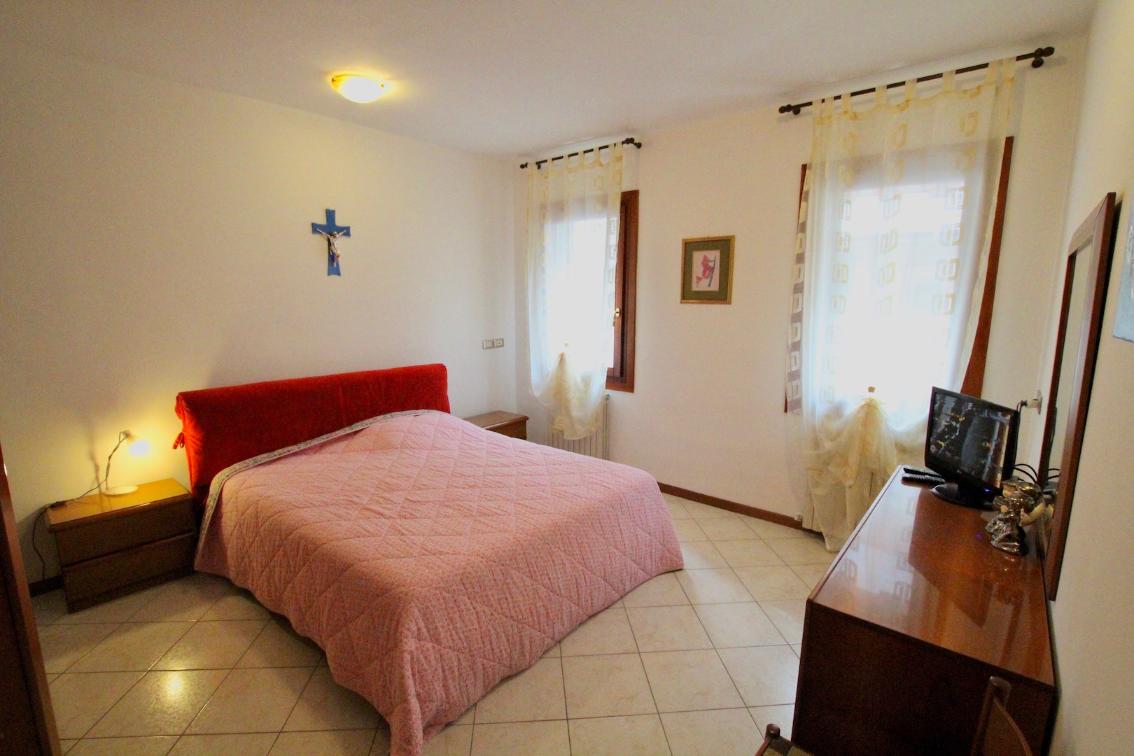 TRILOCALE nella Spiaggia di Levante, a ca. 200 m dal mare e 100 m dal centro storico, sito al 1° piano senza ascensore, composto da soggiorno con angolo cottura e divano letto matrimoniale, due camere matrimoniali con un ulteriore brandina pieghevole, un bagno con box doccia, un ripostiglio, una terrazzina in ingresso.