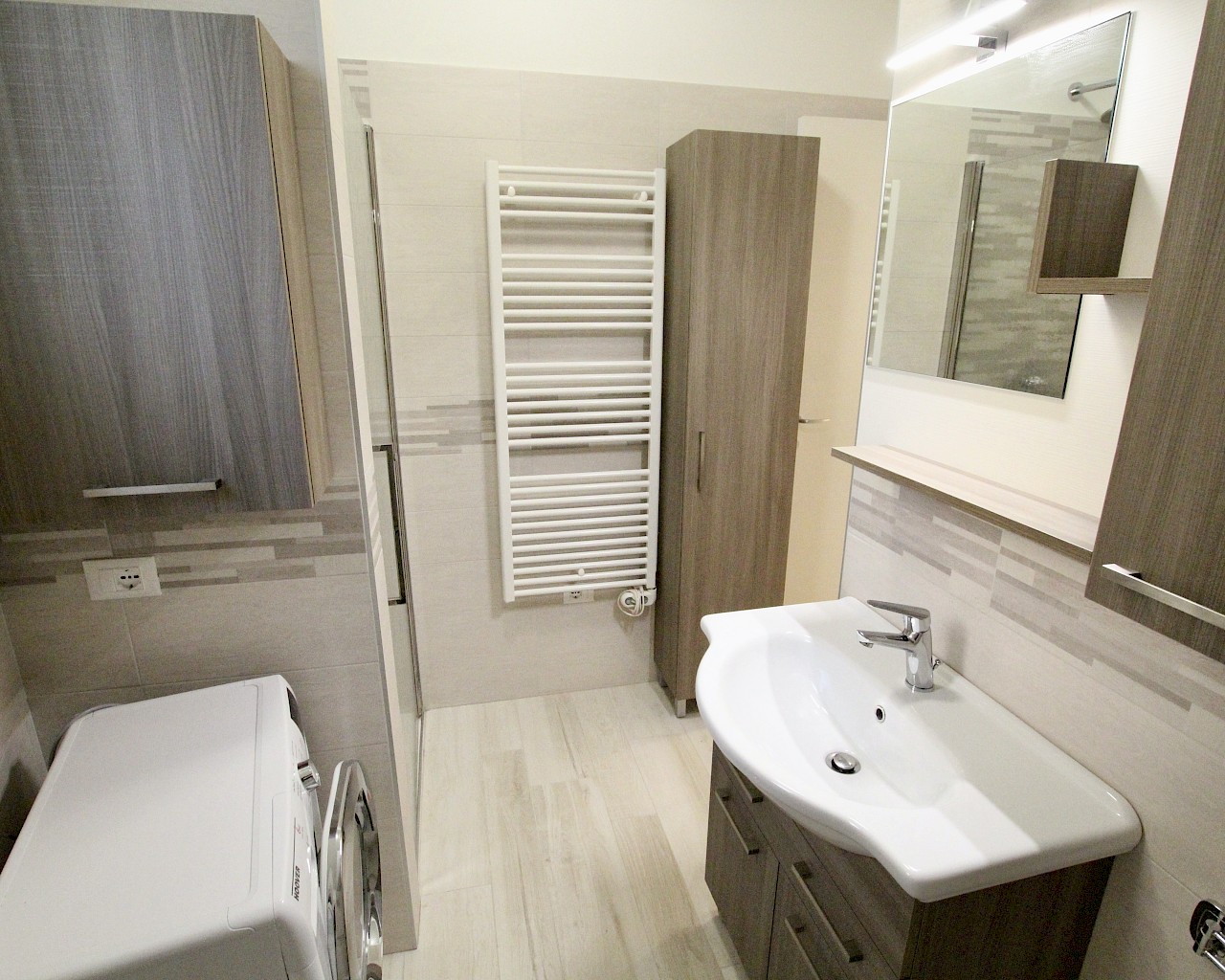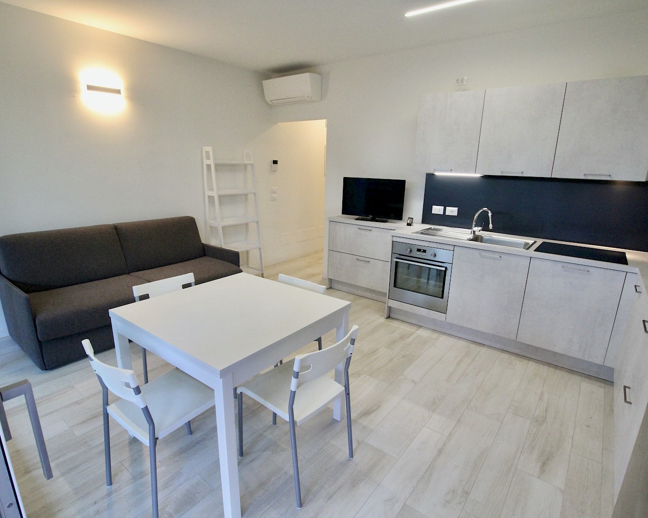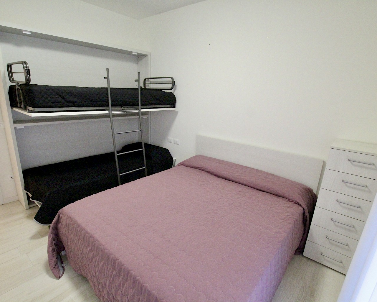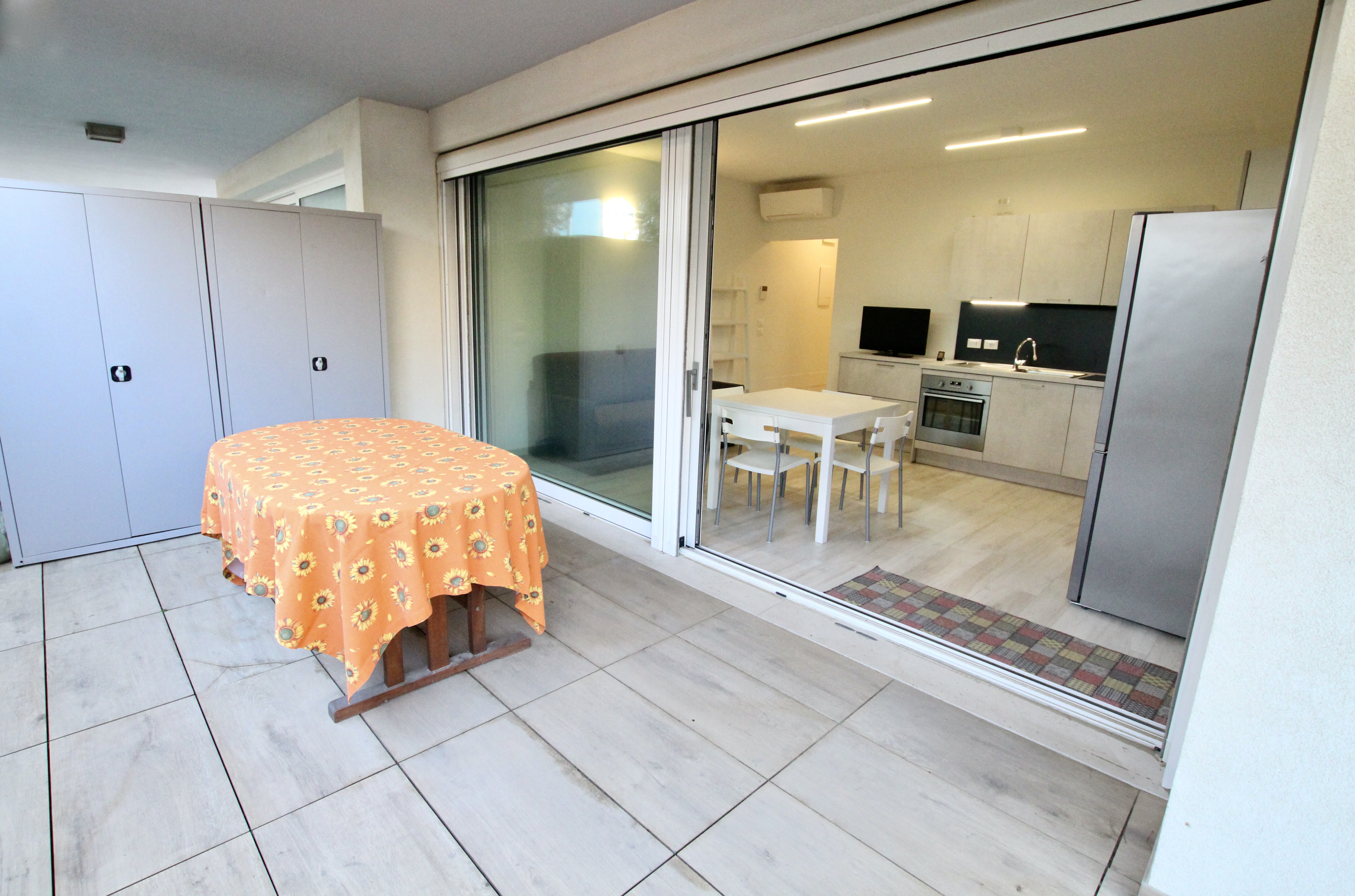 Nella spiaggia di Levante, a soli 150 metri dal mare, BILOCALE al piano terra con ingresso indipendente ed ampia zona esterna privata attrezzata con tavolo e sedie . L'appartamento è composto da soggiorno con angolo cottura e divano letto matrimoniale, camera da letto matrimoniale con un ulteriore letto a castello e bagno finestrato con box doccia. Giardino. TV, aria condizionata, lavatrice, lavastoviglie e forno. 2 Posti auto nell'area scoperta privata.