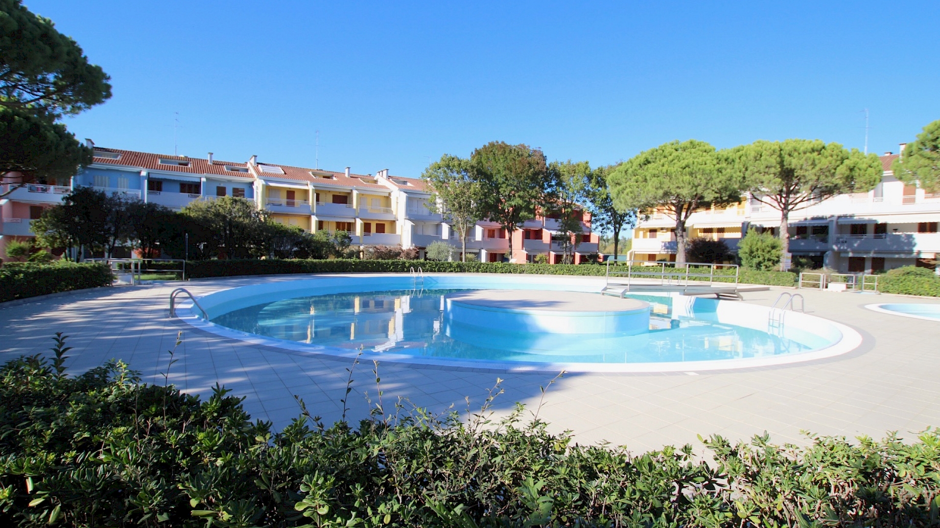 BILOCALE situato nella Spiaggia di Levante, a ca.100 m dal mare in un residence con ampio giardino condominiale e piscina.