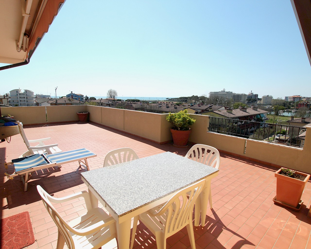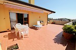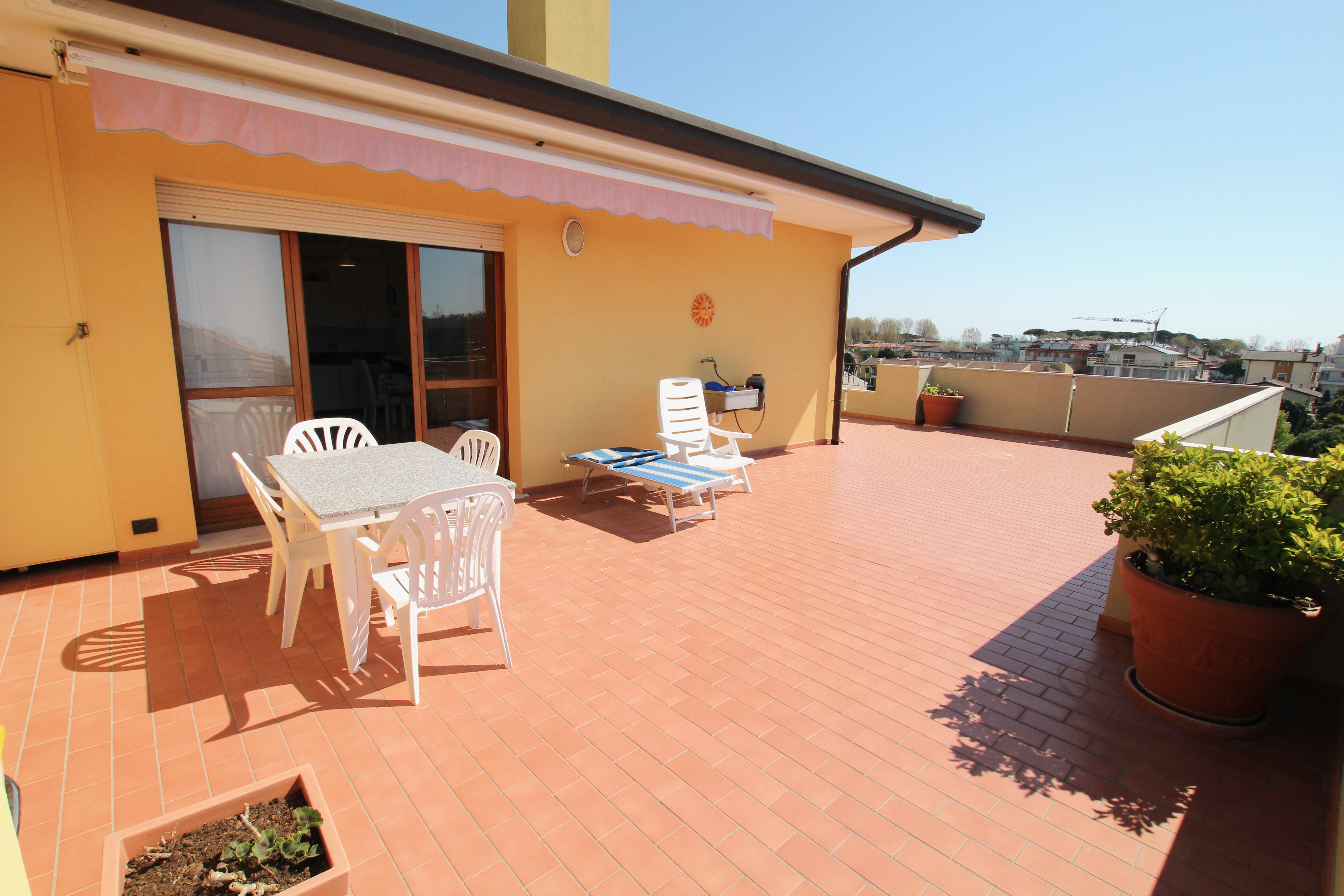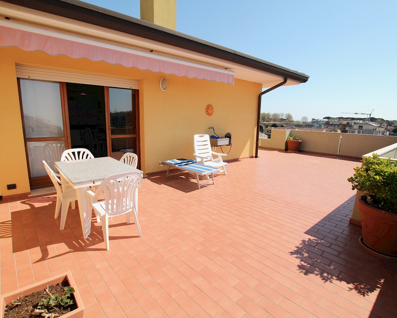 Nella spiaggia di Ponente, a circa 500 metri dal mare, BILOCALE con ampia terrazza al quarto ed ultimo piano con ascensore. L'appartamento è composto da soggiorno con angolo cottura e divano letto, camera da letto matrimoniale e bagno. TV, lavatrice e aria condizionata. Posto auto coperto.