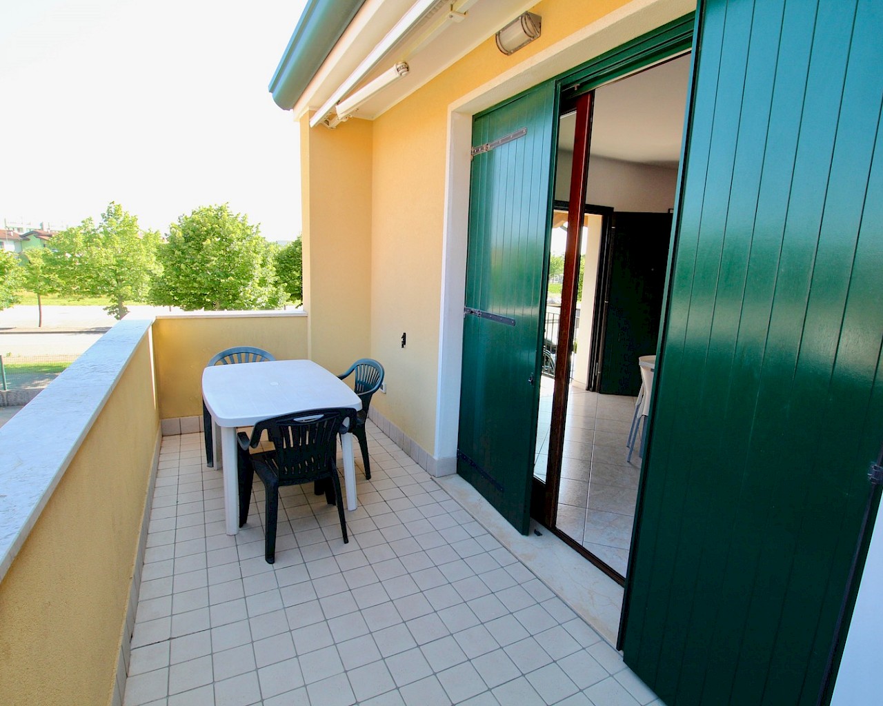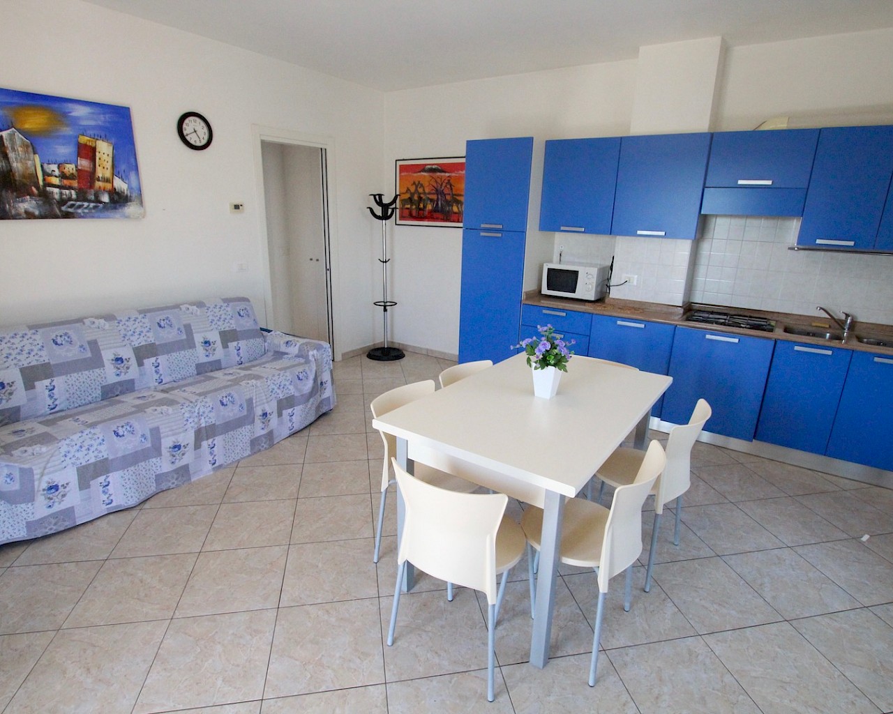 È composto da soggiorno con divano letto matrimoniale e angolo cottura, una camera matrimoniale, bagno finestrato con box doccia e ampia terrazza.