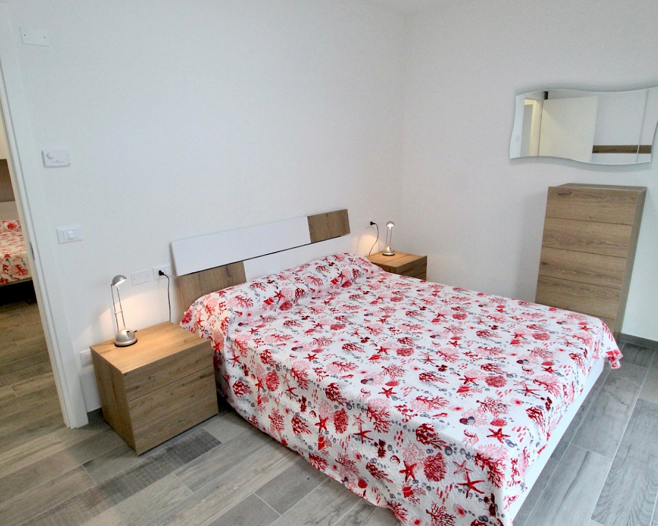Wir vermieten DREI-ZIMMERWOHNUNG im zweiten Stock, bestehend aus einem Wohnbereich mit Küchenzeile und Doppelschlafcouch, zwei Doppelzimmern, eines mit eigenem Bad, ein weiteres Badezimmer, Abstellraum, 1 Balkon und 1 Terrasse.